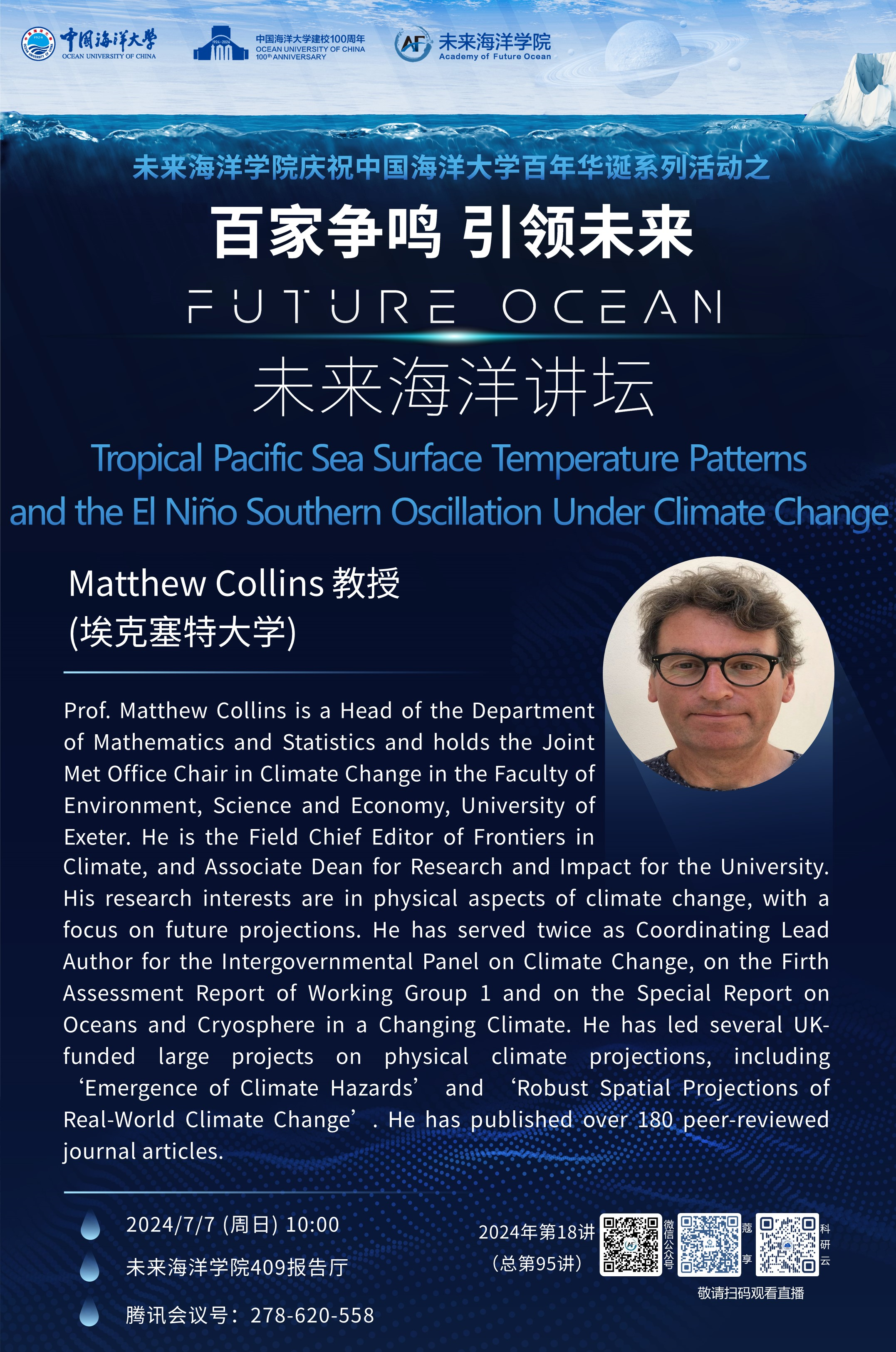 百家争鸣 引领未来 | 未来海洋讲坛第95讲(2024年第18讲) -Matthew Collins: Tropical Pacific Sea Surface Temperature Patterns and the El Niño Southern Oscillation under Climate Change
