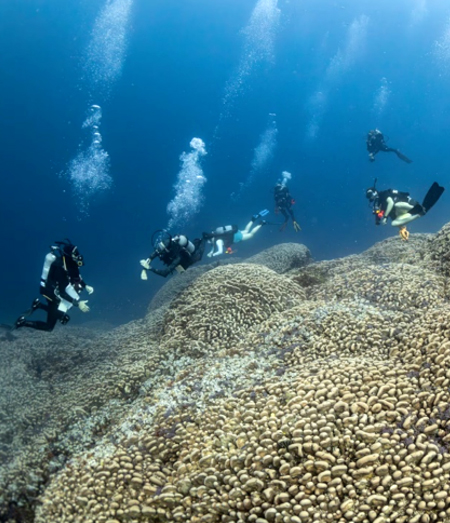 • 今年10月,在太平洋西南部的所罗门群岛(Solomon Islands)附近,研究人员注意到了一个疑似沉船的庞然大物。当他们潜入水下时,才惊喜地发现,这竟然是一片巨大的珊瑚群!经过测量,这片珊瑚宽34米,长32米,高5.5米,甚至比鲸鱼的体型还要大。研究人员们认为,这片珊瑚在地球上大约已经生长了300余年,其中可能栖息着数十亿只珊瑚虫。一般来说,珊瑚会长成一个圆球的样子,如同一个冰淇淋球。然而这片珊瑚实在是太大了,整体看起来更像一个融化了的冰淇淋——又扁又平,在海底铺展开来。